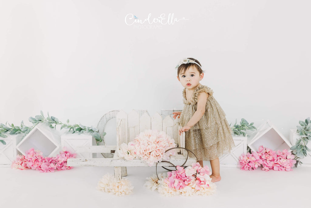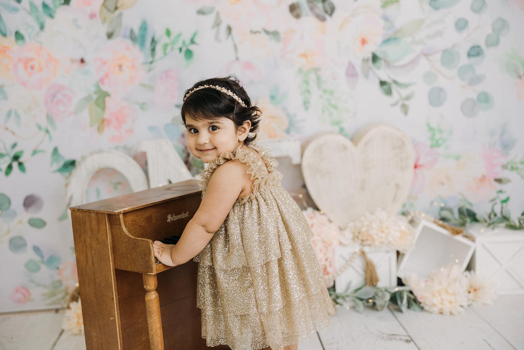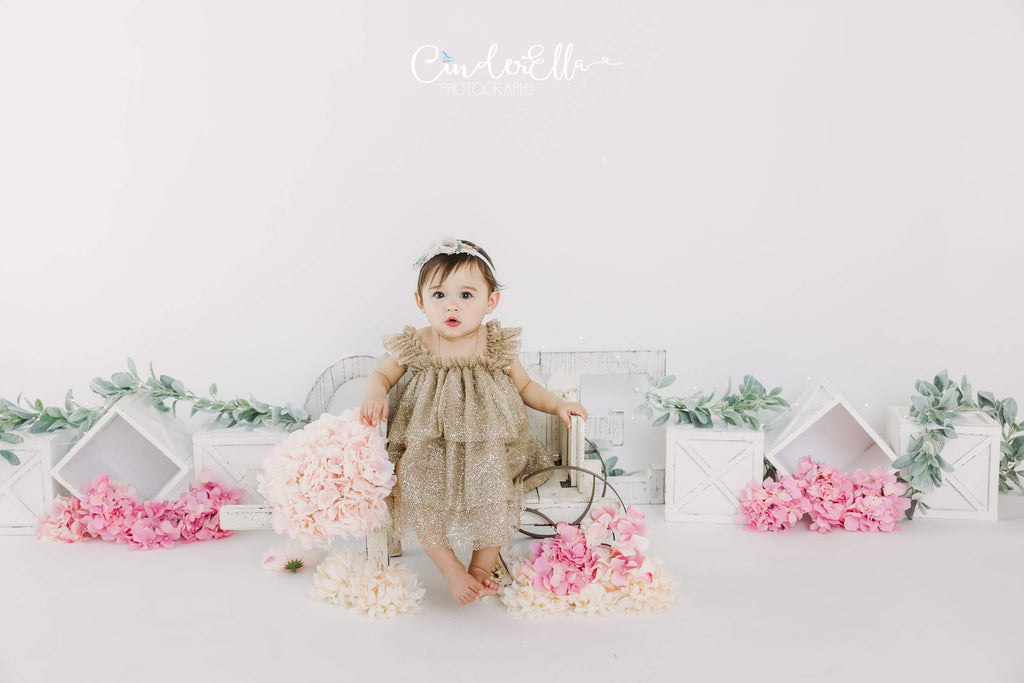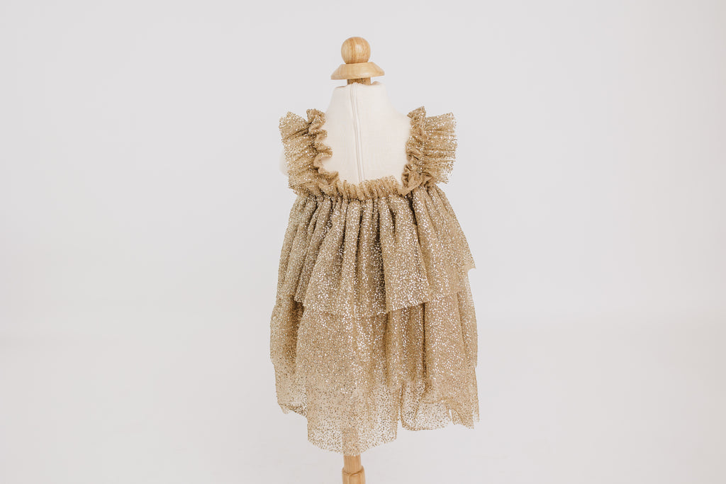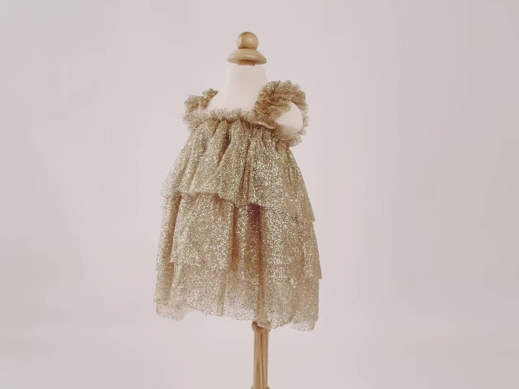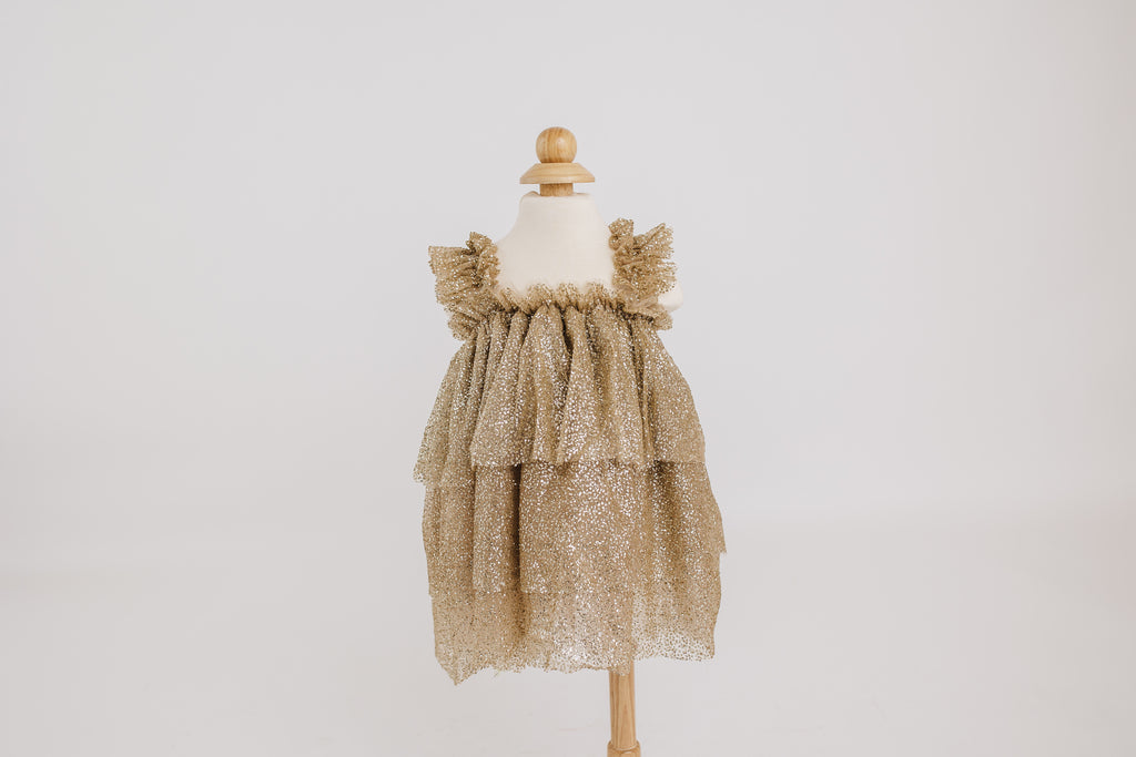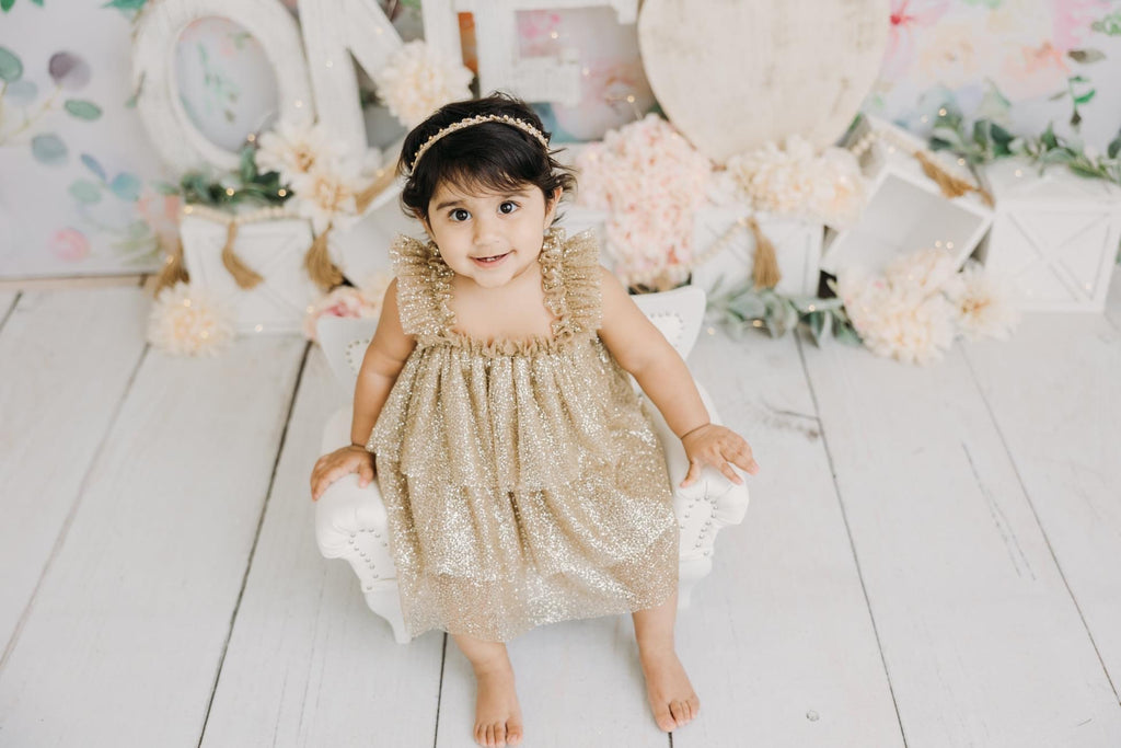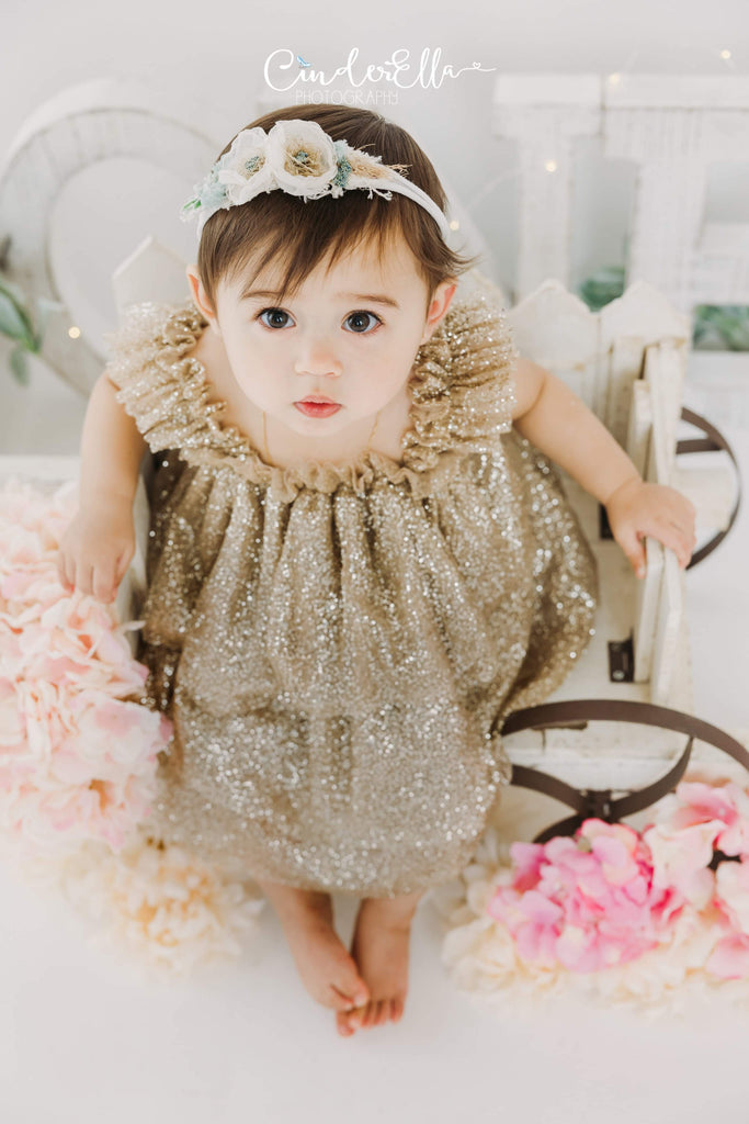 When your newborn is ready to shimmer and shine, the Goldie is the perfect choice. As the name suggests, this is a gold dress with shiny gold accents throughout. Be prepared to stun everyone as light reflects off this dress. To make it easier for the beautiful newborn and parents, a snap button closure is at the bottom for easy opening.